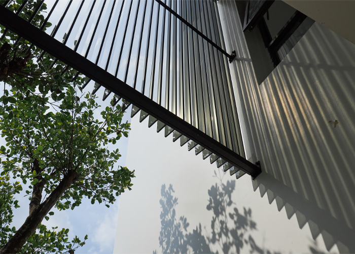 กรองแสงแดดตามทิศทาง และแสงสว่างที่จ้าตลอดทั้งวัน รวมทั้งเป็นหน้าตาของบ้านที่บอกเอกลักษณ์ของงานดีไซน์ได้เป็น