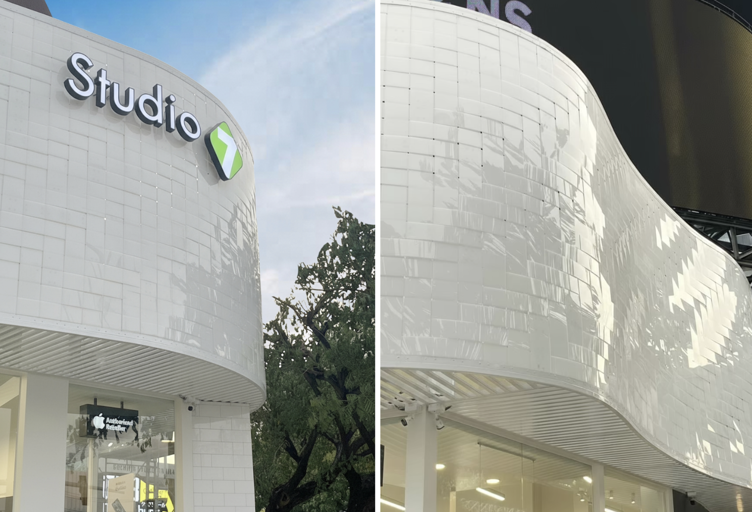 เพื่อค้นหาผลลัพธ์ของวัสดุสำหรับฟาซาดที่ต้องการเส้นสายรูปโค้ง รวมทั้งเรื่องความโปร่งแสงและโปร่งใส แผ่นอะคริลิก Shinkolite คือคำตอบของวัสดุที่ตรงกับความต้องการที่ว่ามา และยังเพิ่มเติมคุณสมบัติได้ตามต้องการได้อีกผ่านแผ่นอะคริลิกหลากหลายรูปแบบ ทั้งสีสันที่มีให้เลือกหลากหลาย รูปแบบการจัดวางเพื่อให้ได้ปริมาณแสงผ่านตามที่ต้องการ ร่วมกับข้อดีที่เป็นวัสดุน้ำหนักเบาจึงช่วยลดภาระงานโครงสร้าง พร้อมกับคุณสมบัติที่ทนทานต่อทุกสภาพอากาศ จึงเป็นได้ทั้งวัสดุฟาซาดอาคาร หรือป้ายไฟสำหรับห้างร้าน ซึ่งเป็นวัสดุที่ต้องการความหนาสม่ำเสมอในแบบที่แผ่นอะคริลิกทำได้